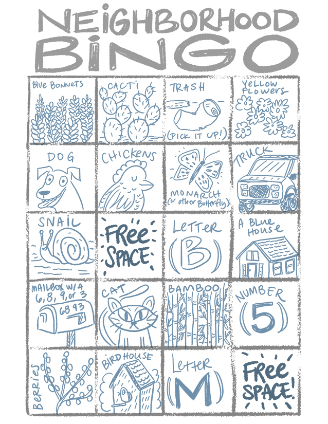 Free Download for fun neighborhood BINGO printable - instructions, blank option, and full bingo