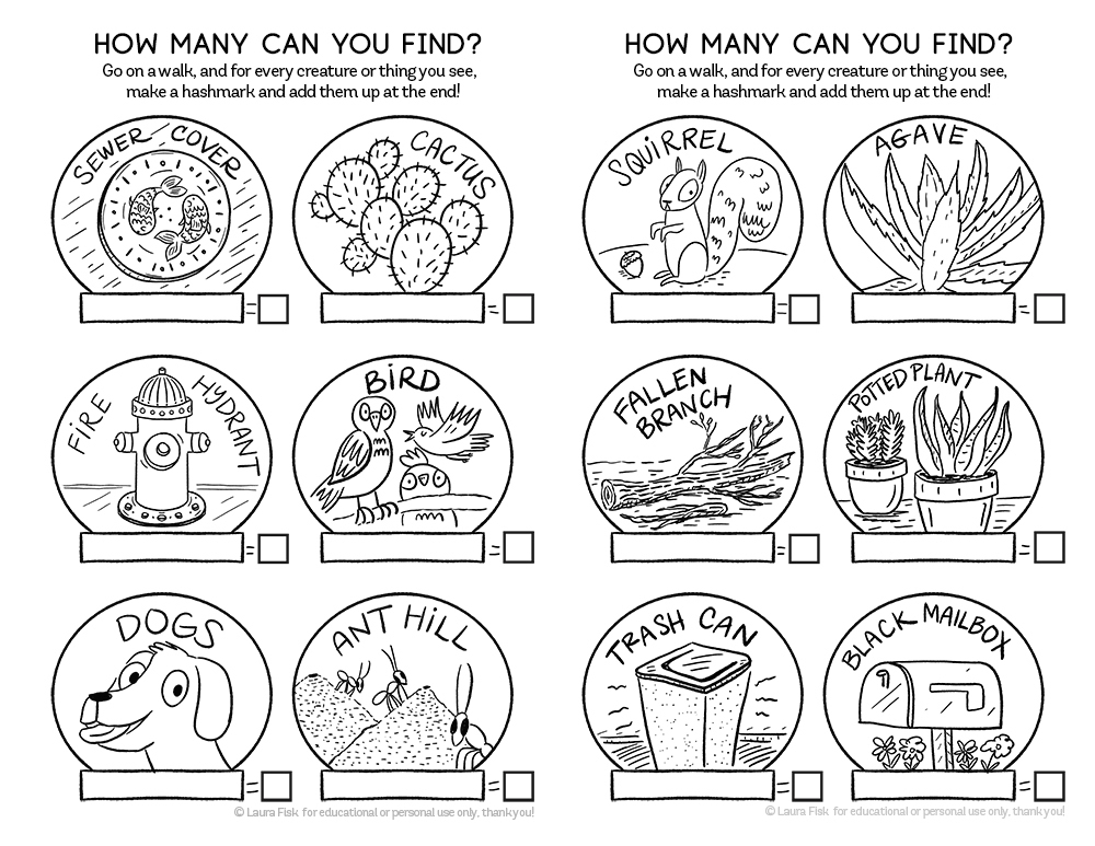 Digital Download - Go on a search in your neighborhood and see how many you can find of a certain neighborhood standby - how many mailboxes, or squirrels, or butterflies can you find? 2 pages and 4 different search and finds total!